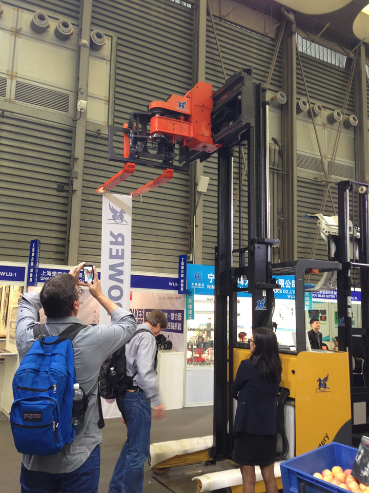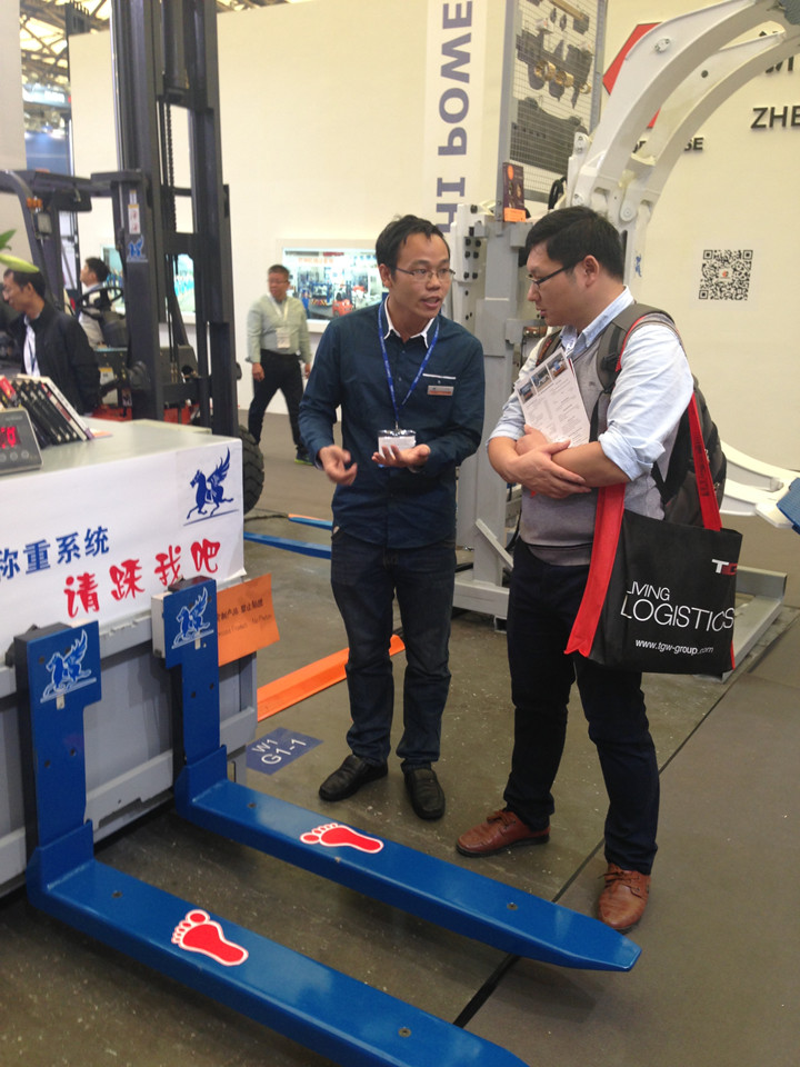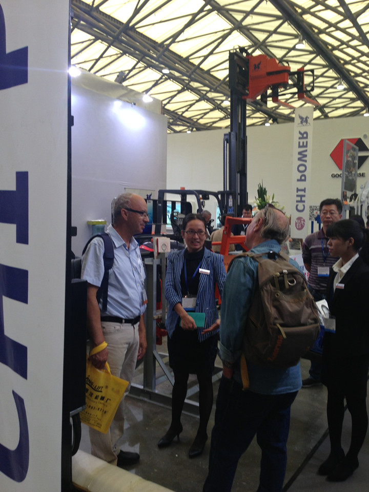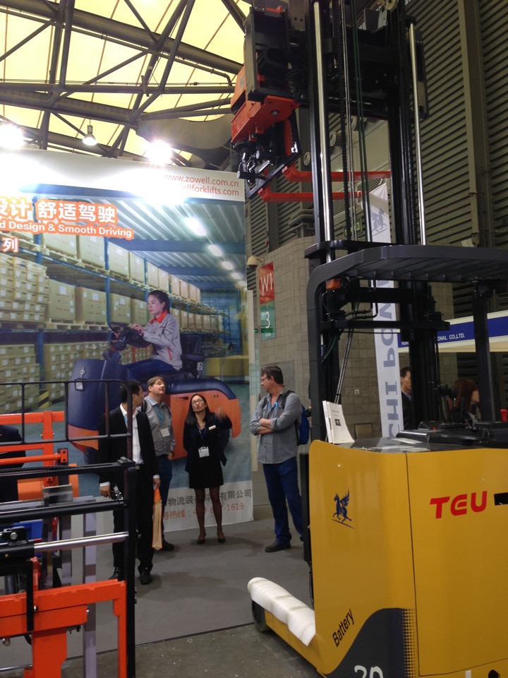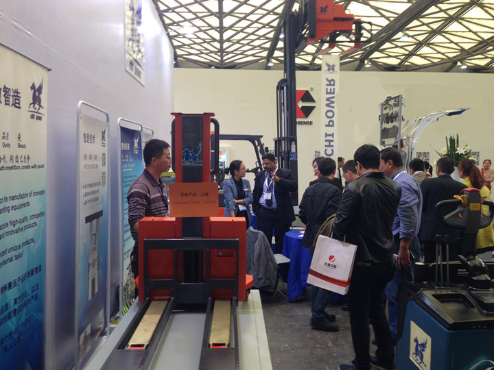 2015年10月27日,2015年亚洲国际物流技术与运输系统展览会(2015 CeMAT ASIA)在上海新国际博览中心如期举行。作为参展商的一员,我公司精心准备了多款独具特色的叉车属具,有倾翻功能的翻箱器、无线智能称重货叉、客户定制大吨位纸卷夹、方便随车搬运的物流搬运小车、适用于窄通道堆垛货物的三向堆垛叉车等,参观的国内外客户们尤其对我公司的窄巷道的三向堆垛叉车非常感兴趣,该叉车是基于平衡重式内燃或电动叉车、前移式叉车而改进设计制造,对地坪没有特殊要求,为立体存储和空间高效利用提供了一个经济可行、快速实施的解决方案。